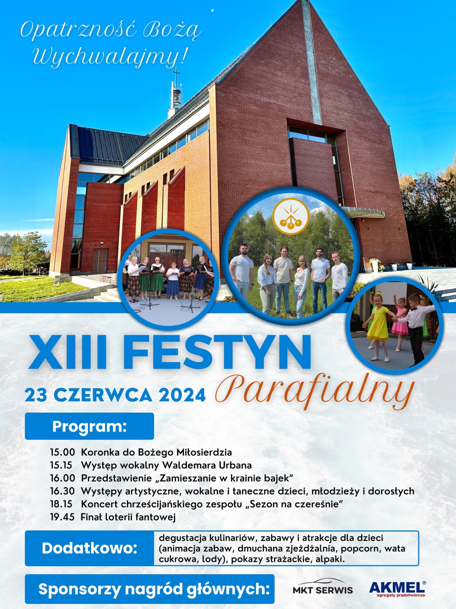 Serdecznie zapraszamy na XIII Festyn Parafialny, który odbędzie się w dn. 23.06.2024 r., przy kościele pw. Bożej Opatrzności w Woli Mieleckiej.